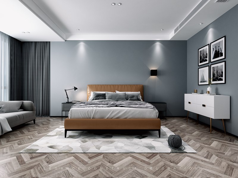 一張床、一個床頭柜、一盞燈,一架鋼琴加上背景墻上風景畫,沒有過多多余的裝飾,卻讓臥室顯得相當?shù)氖孢m溫馨、生動而自然。