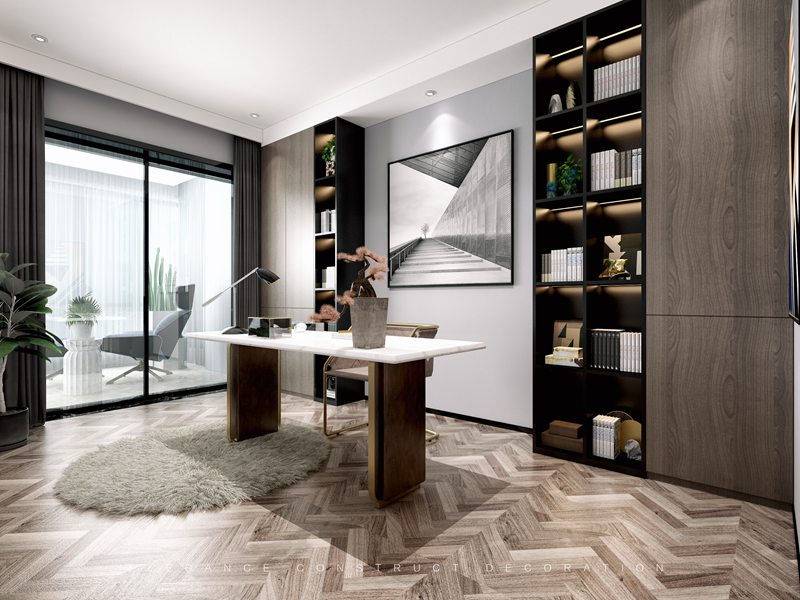 書房、浴室等的設計也是一切從實用的角度出發(fā),延伸更多空間的實用性能、摒棄多余的裝飾,簡單簡約、悠然淡雅。別有一番陶淵明筆下的“采菊東籬下,悠然見南山的風情。”