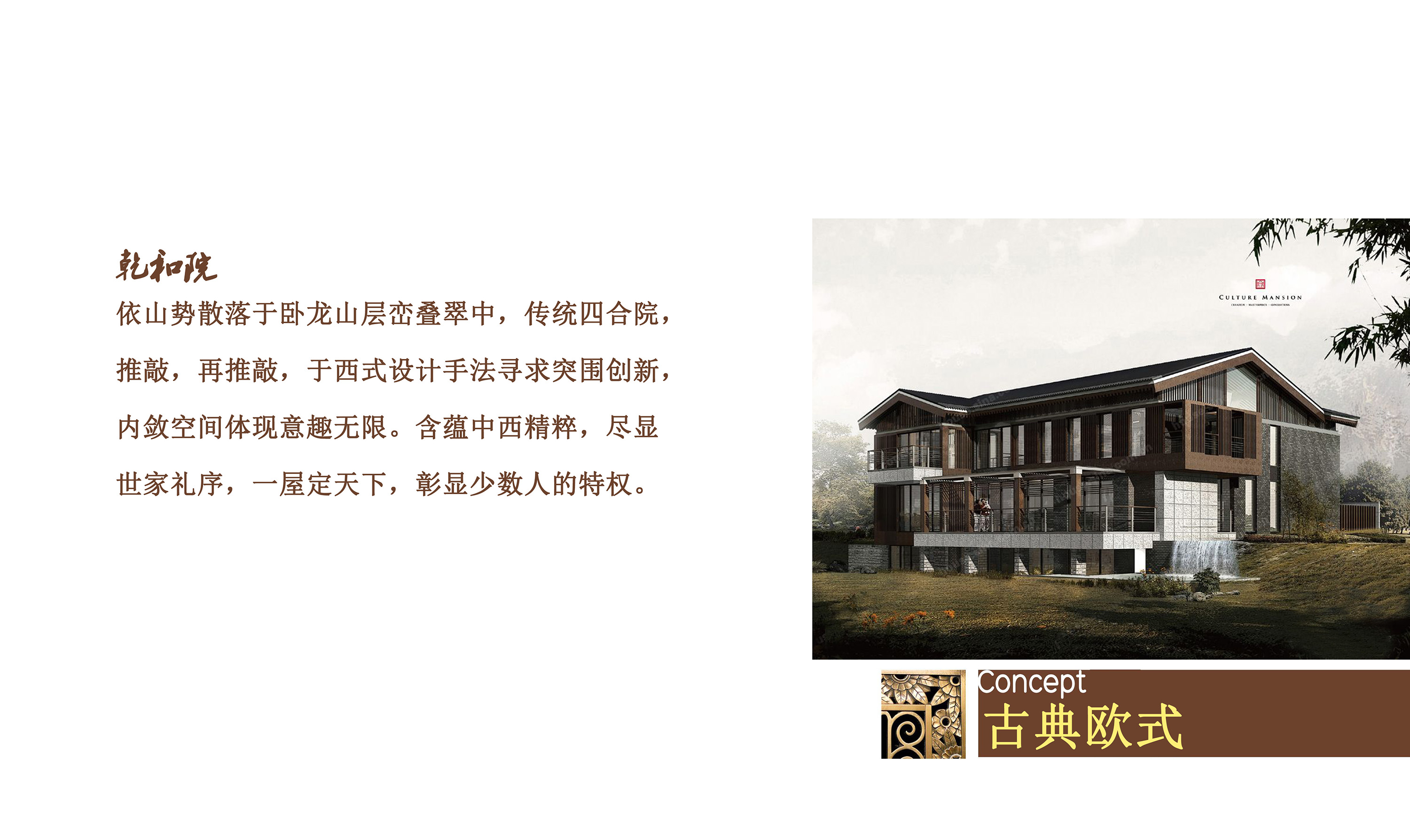 本案依山勢散于臥龍山層巒疊翠中,傳統(tǒng)四合院,含蘊中西精粹,盡顯世家禮序,一屋定天下,彰顯少數(shù)人的特權(quán)。古典歐式風(fēng)格設(shè)計,通過完美的典線,精益求精的細節(jié)處理,營造典雅、自然的生活空間,帶給主人數(shù)不盡的家居舒適感,讓人心情舒暢、在繁雜多變的世界里享受一方令人心馳神往的靜謐空間。