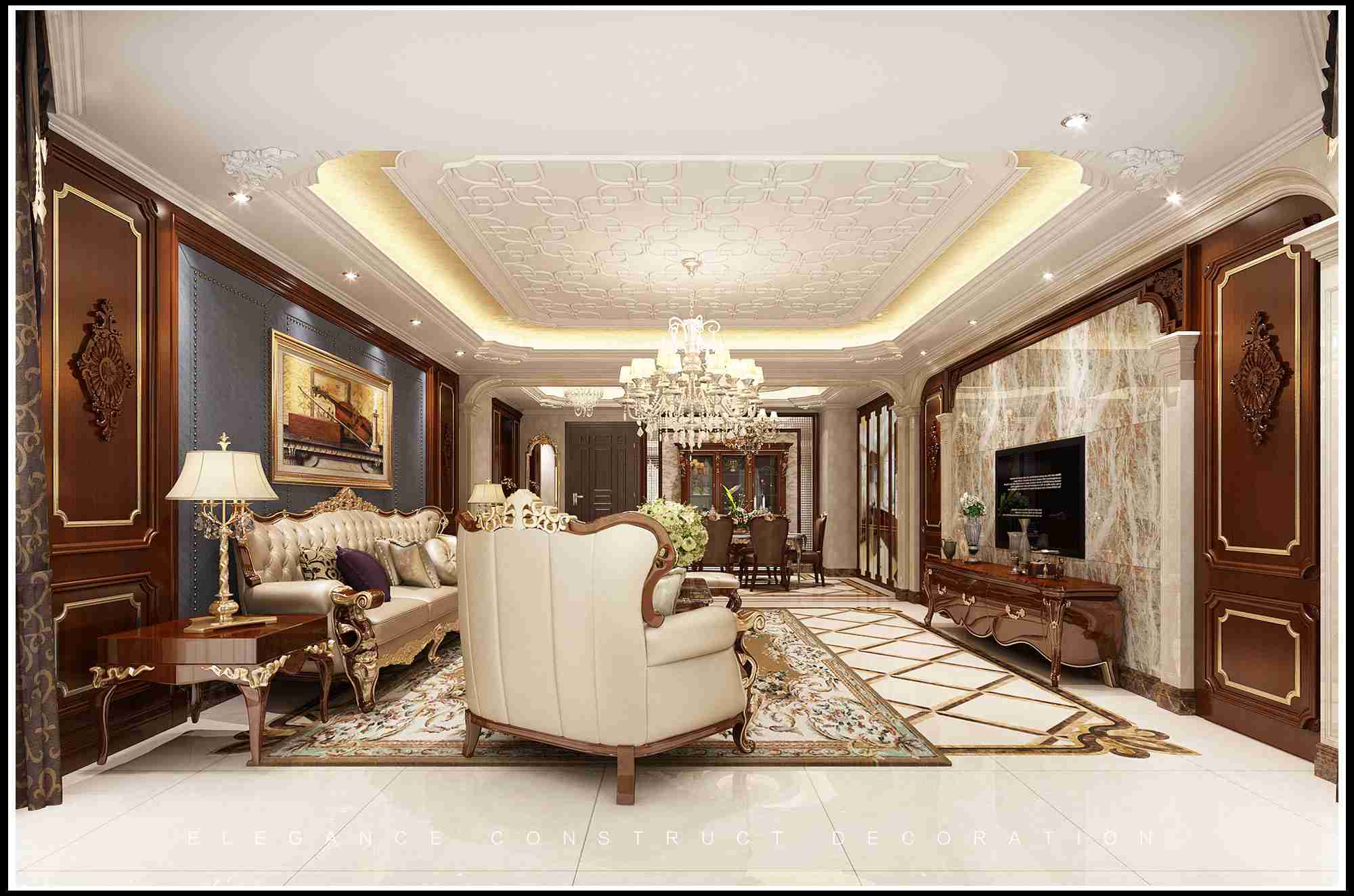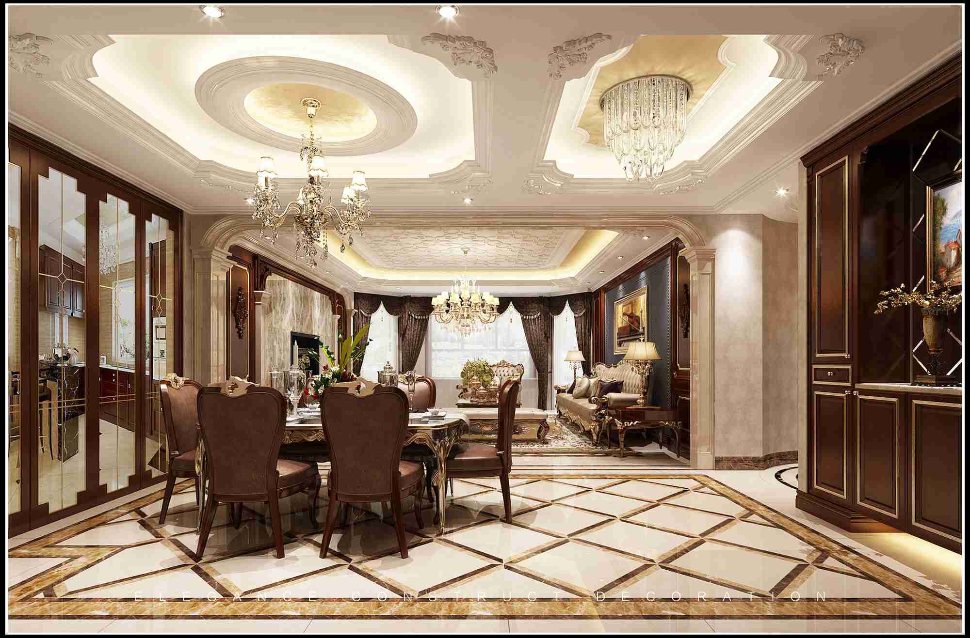 本案在整個設(shè)計中,雖然整個別墅空間歐式藝術(shù)氛圍濃厚,但是在以歐式格調(diào)為主的同時,利用空間的建筑造型加重空間的美學(xué)氣息,并極大地方便了生活起居。整體設(shè)計秉承著放松、舒適的原則