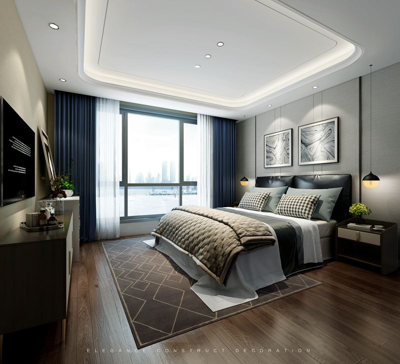 主臥采用了簡潔硬朗的線條,運用棕色桌椅和紫紅色布藝,在強調(diào)統(tǒng)一的同時,也注重空間層次的表達,