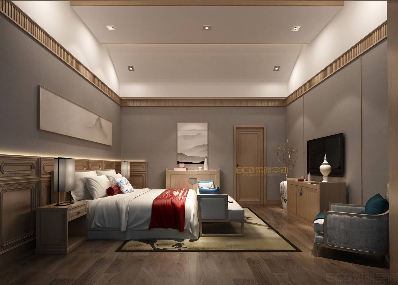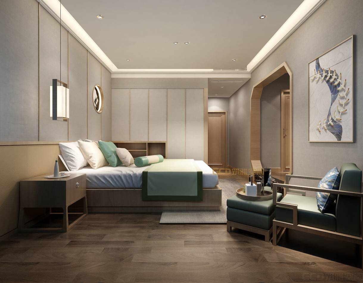 在設計中,以禪意為基調,融入自然山水元素,通過木頭、石頭等本身材料色調,打造大自然本身的色彩。給居住者帶來更多禪意悠然雅致、自然放松的度假體驗!
