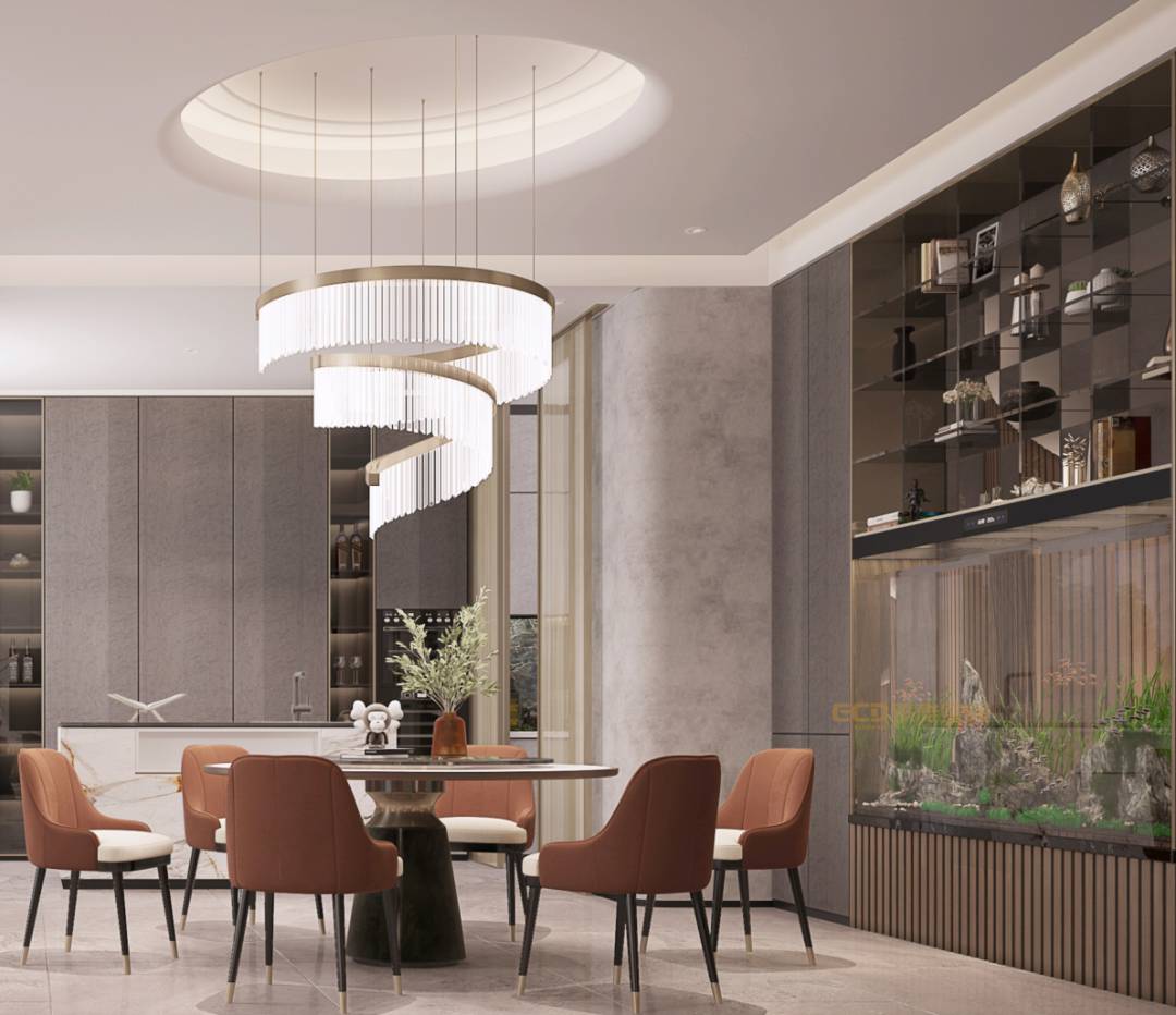 客廳的空間線條和弧度時(shí)間彌漫著些許的溫柔,暖色調(diào)彌漫著優(yōu)雅的感覺,水晶吊燈、金屬點(diǎn)綴,增添空間的輕奢質(zhì)感,在設(shè)計(jì)師的搭配下,繁而不雜,鮮活飽滿,細(xì)節(jié)之處盡顯優(yōu)雅。挑空的客廳成為空間之眼,光從上往下輕灑,白天欣賞日出,晚上欣賞月亮,好一派幸福的景象。