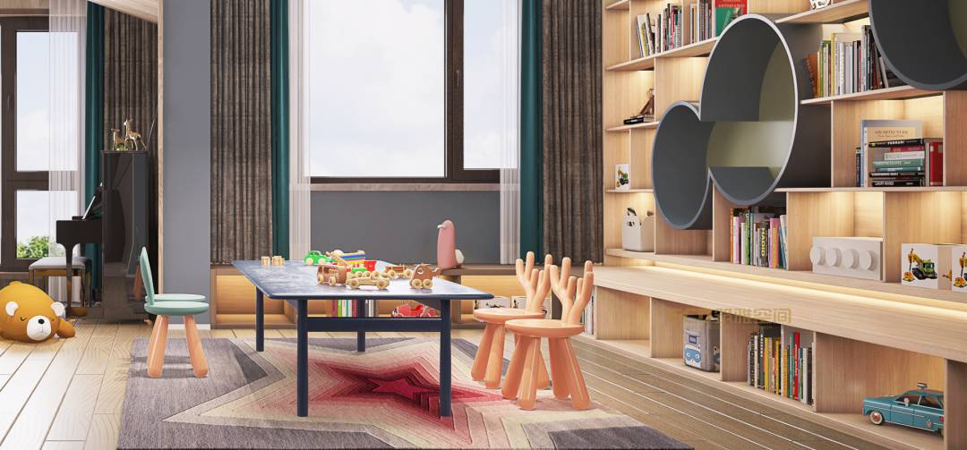 This is a growing space, the designer in the best area of the sun to create a parent-child interaction zone, so that the space with the residents grow, mobile and changeable can be combined, to remove the old branches sprout new, unlimited possibilities.