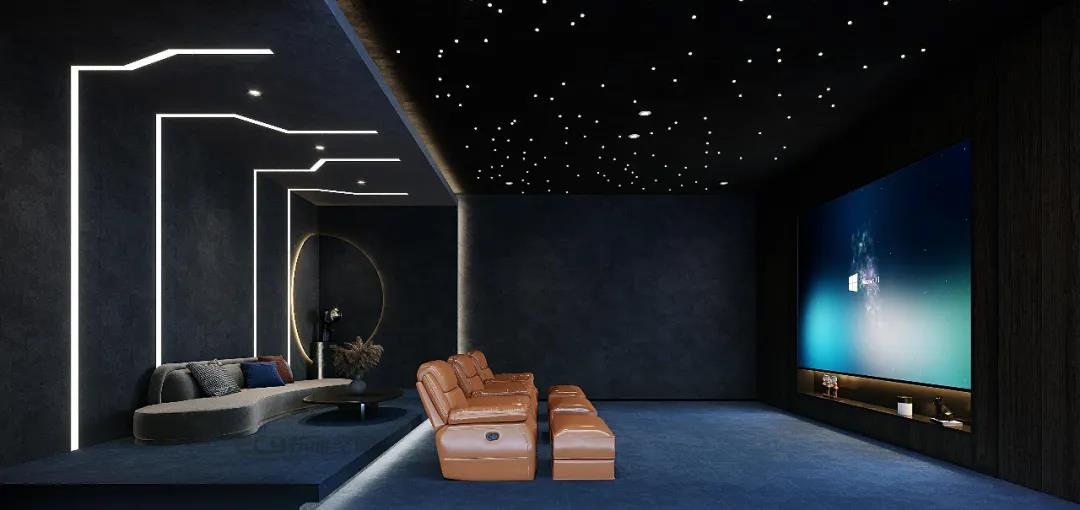 Stay at home and relax. How can you do that without a private home theater? Designers use romantic and elegant elements of decoration, will be a video studio into a super comfortable, spacious, romantic space, you can drink alone, taste books, can also be with old friends and family party drinking and watching movies.