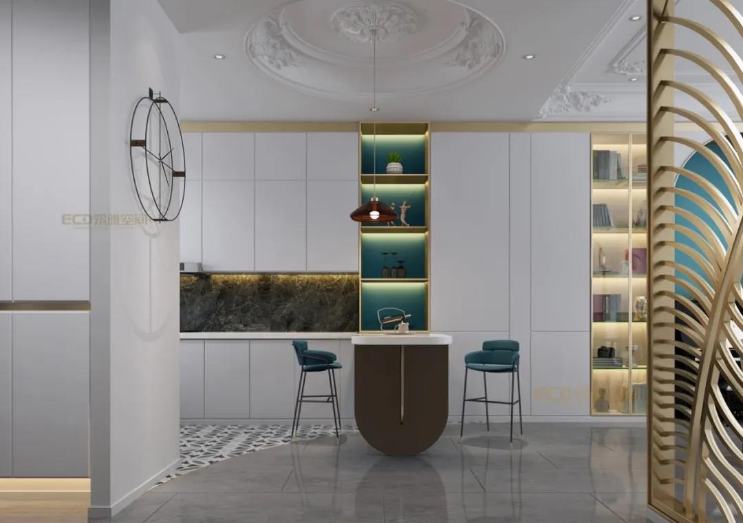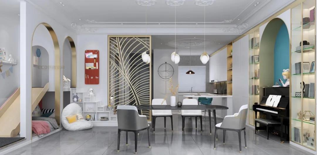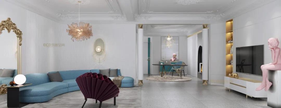 This is a Wangfu courtyard villa project, the design of the case in the post-modern style to find a balance between the refreshing feeling and French lines, looking forward to mix and match the little surprise brought about.In terms of color and material, the designer subverts the conventional color scheme and materials, skillfully uses contrasting colors and new materials, and works of art to add a touch of color and style to the space, making the French light romantic style more romantic.