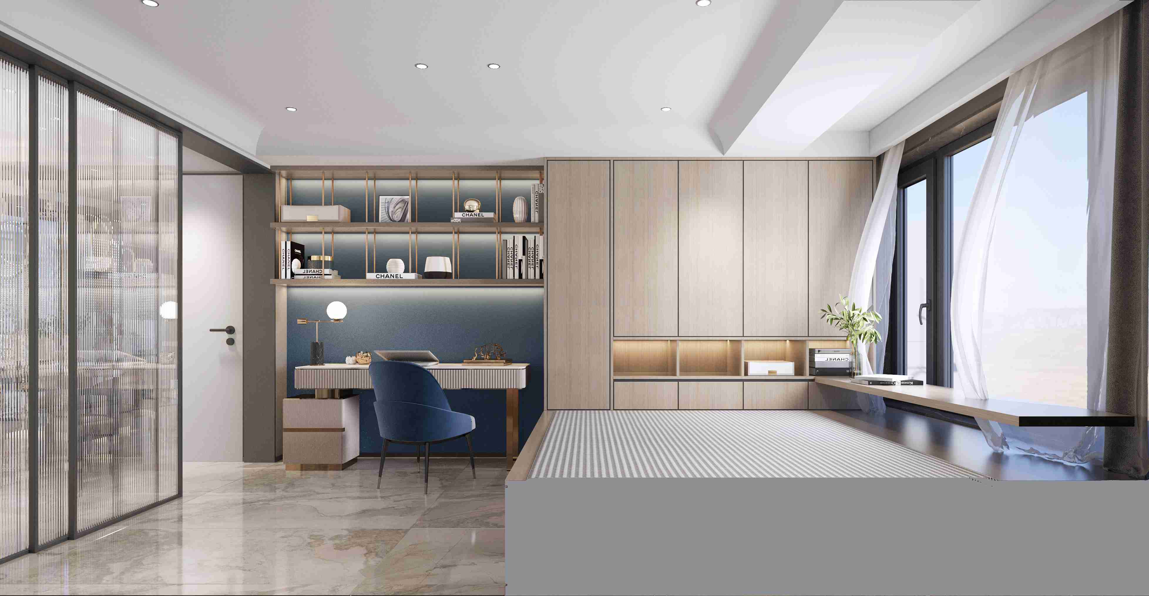 劉老師將墻體改造成玻璃移動門,使空間更加通透敞亮擴(kuò)大整體的視覺,同時將更多的陽光引入室內(nèi),讓動線更加方便。榻榻米空間打造辦公區(qū),收納柜可以放置一些收藏與辦公用品,半開放式設(shè)計讓整個空間靈活有變化,大大的窗戶將暖陽盡可能的引入室內(nèi),捧一杯熱茶,看朝陽起落,回味點滴幸福。