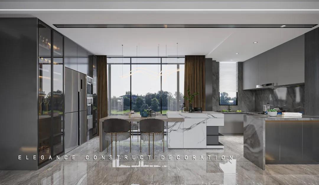 U形的廚房和餐桌一體化島臺設計,舒適的動線和寬敞的操作空間,滿足一家人對美食的全部幻想。大面積的窗戶,保證最大通風采光度的同時,又能為居住者帶來更好的生活體驗。