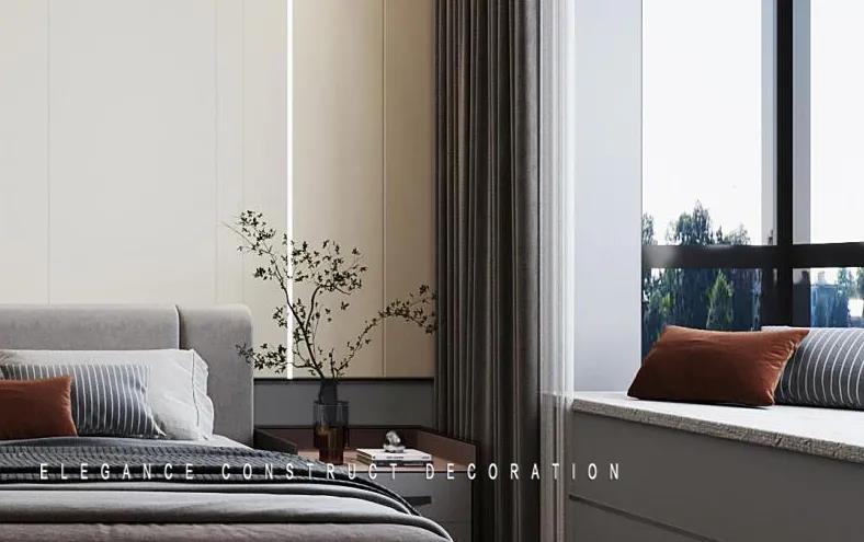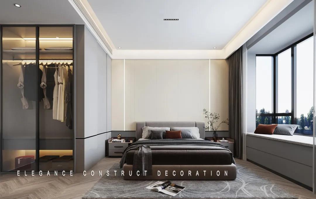 臥室的設計,遵循“少即是多”的裝飾原則。軟裝和燈光的配合相得益彰,營造一個舒緩靜謐的睡眠環(huán)境。主臥的收納柜采用磨砂材質(zhì),給予居住者更強的舒適感和安全感。