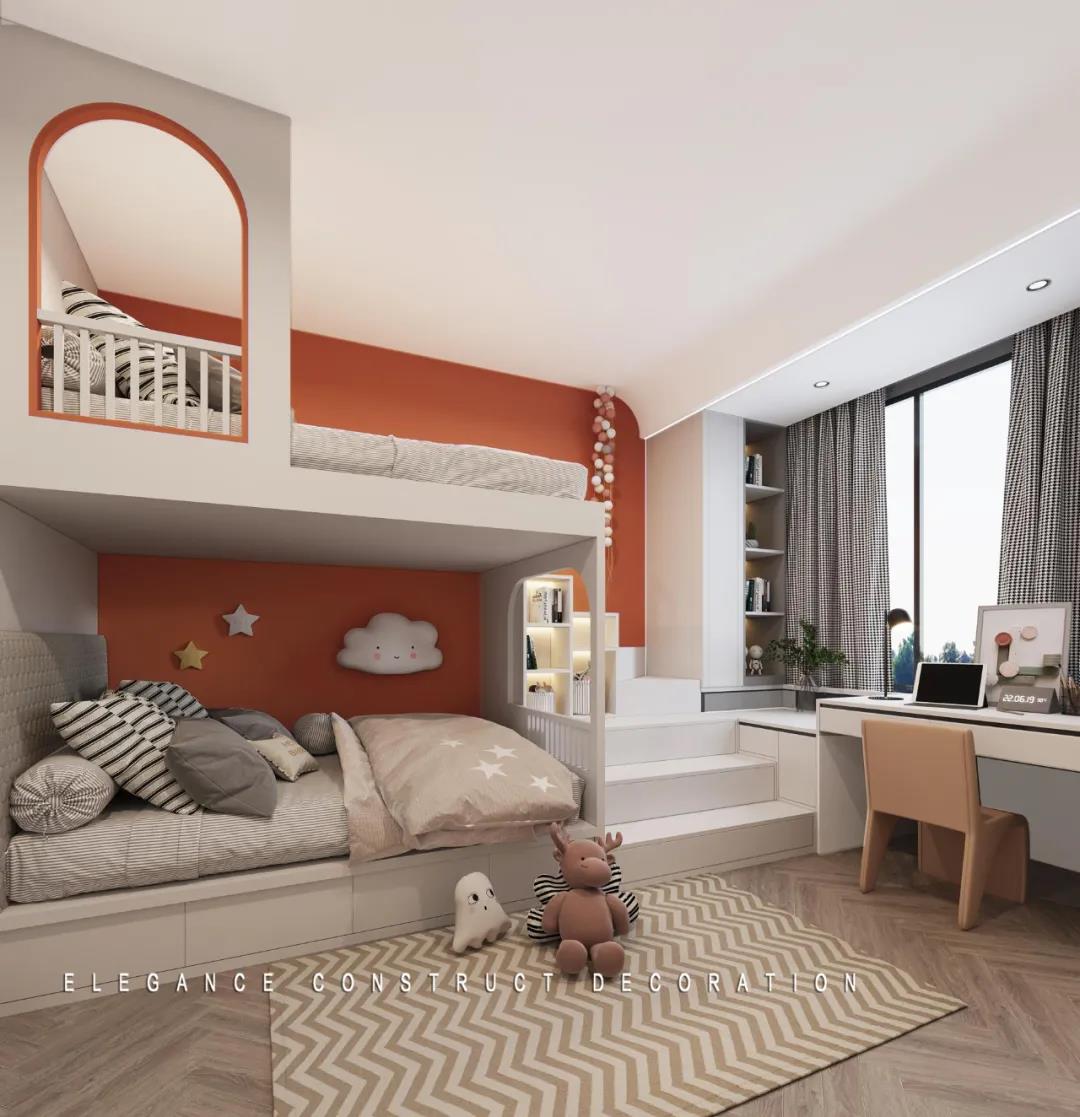 小孩子的想法總是天馬行空,兒童房的設計自然也是趣味十足,圓拱門的設計妙趣橫生,星星云朵等的加入更靜謐安然,在這里,孩子的每一次成長,都是這個家中最寶貴的珍藏。
