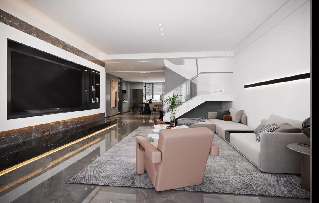 客廳,將都市優(yōu)雅的格調(diào)精煉為流暢的空間線條,靈動(dòng)的橘色、淡雅的灰色、沉謐的黑色等色彩的運(yùn)用,激蕩著客廳空間的鮮活氣場(chǎng)。