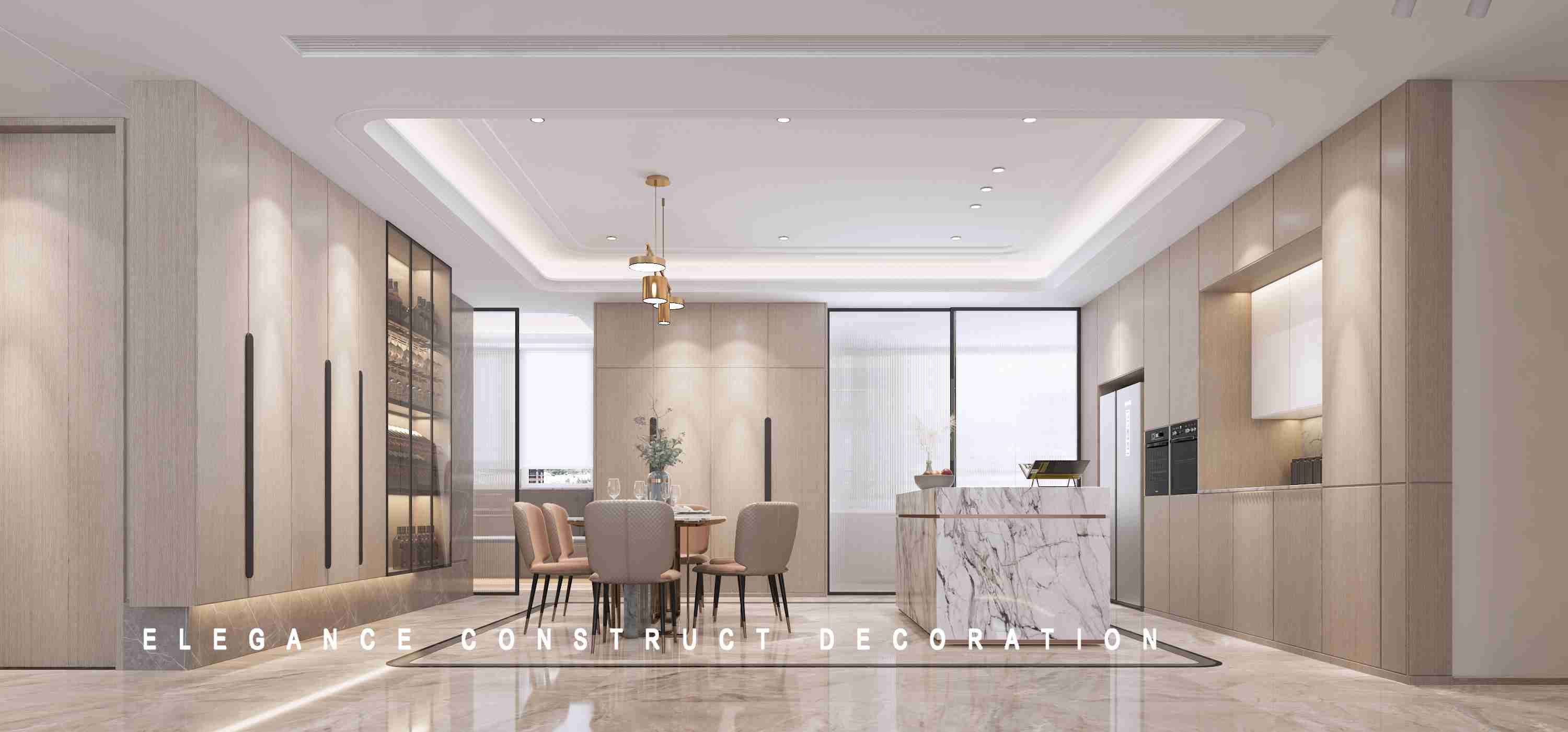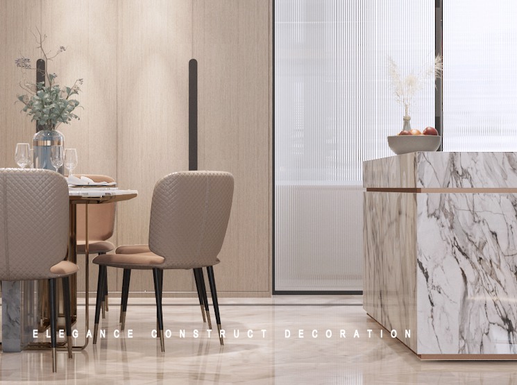 質(zhì)感十足的座椅將一家人幸福的煙火氣圍合珍藏,在燈光的暈染之下,幸福的氛圍感彌漫開來,不只是幸福的一日三餐,更是一家人感情升溫的空間。整面的酒柜設計體現(xiàn)了男主人的品味與愛好,珍藏的美酒,