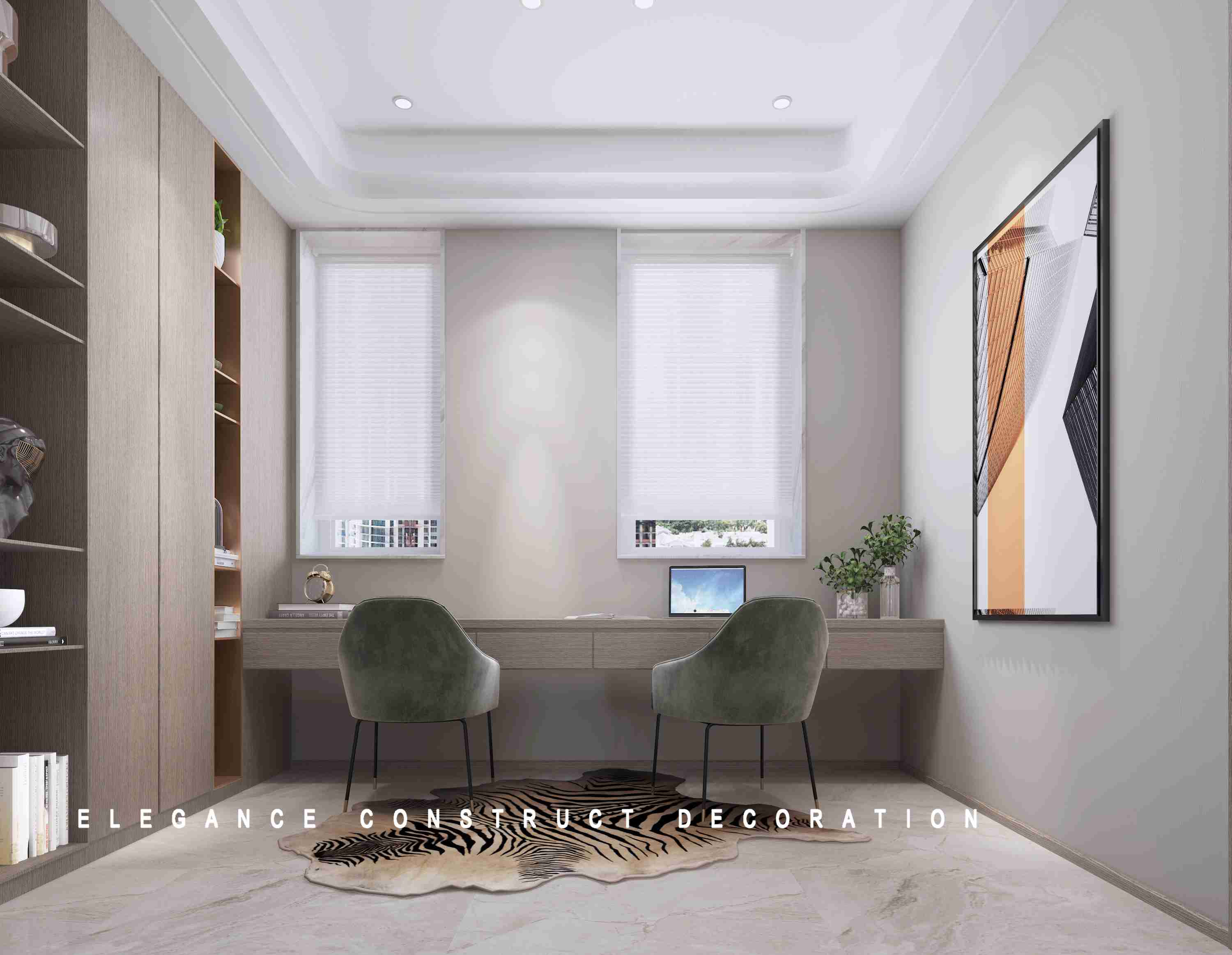 書房在設計上靜雅簡約,灰色的使用讓空間發(fā)出安靜而具品味的溫柔旋律,將陶情適性的閱讀書畫空間表現(xiàn)的恰如其分。閱讀讓居者沉淀,于靜遂中心神與思想交匯,書香與茶香交融彌漫,悠遠舒長中,遇見沉靜安然的心境。