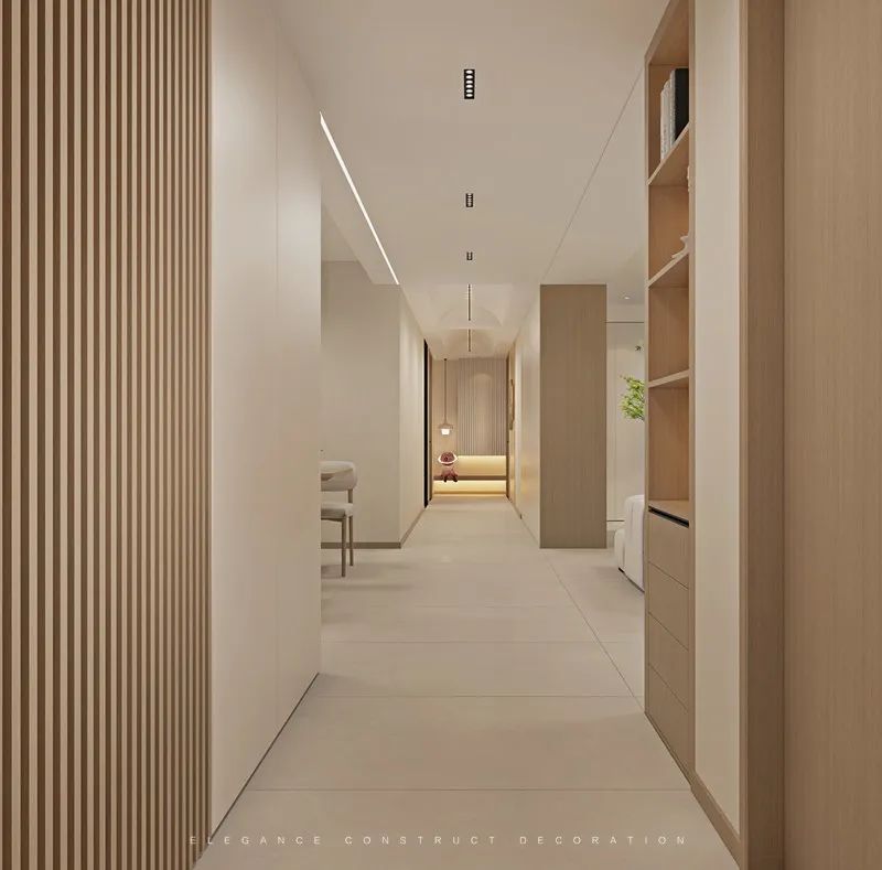 素雅清新的色調(diào)兼顧空間功能與收納,為柔和優(yōu)雅的靜態(tài)空間增添了律動(dòng)感。讓人在步入空間的同時(shí),擁有溫馨舒適的感覺。