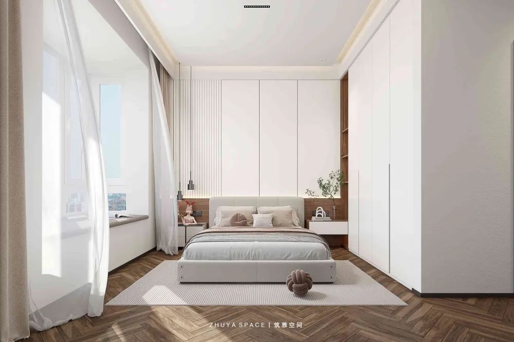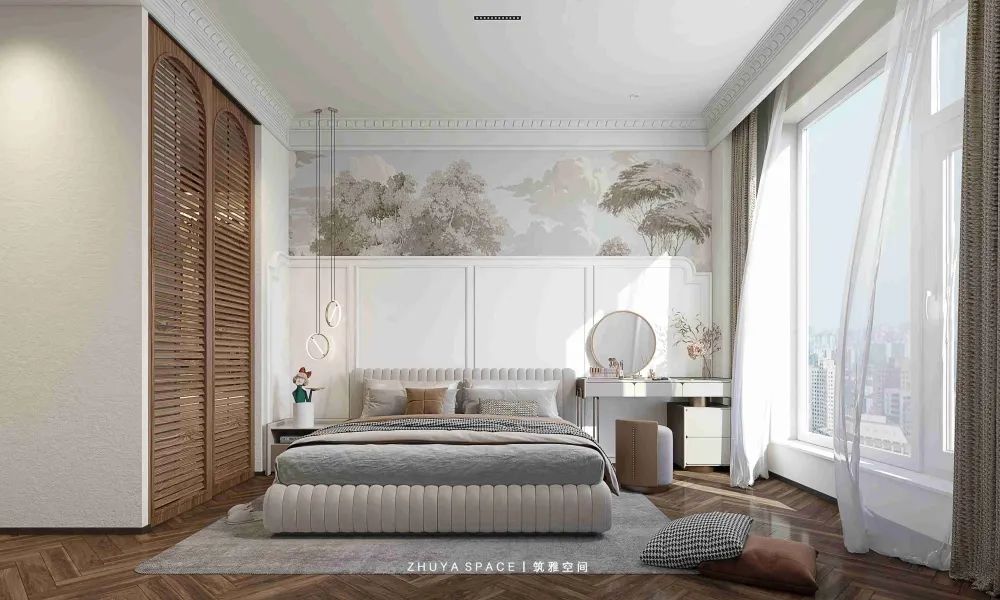 主臥引用法式軸線、低調(diào)輕奢的材質(zhì)選擇,