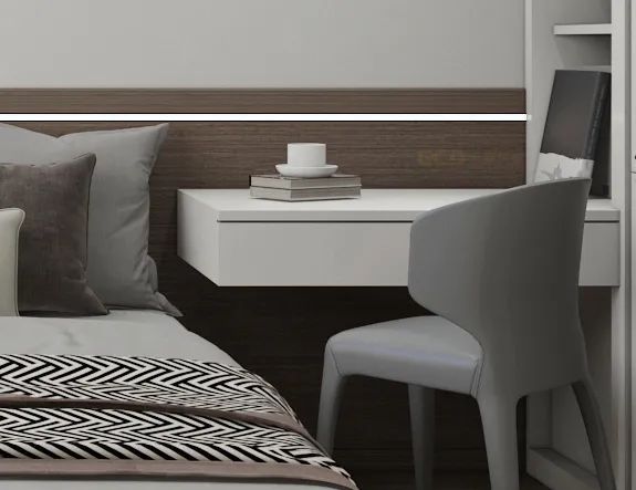 背景墻以燈帶營造氛圍,裝飾畫與線條,喚起全屋格調(diào)。