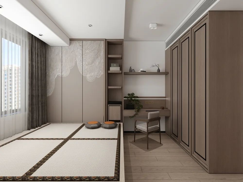 而空間劃分上,在保留最大化收納的同時,也為業(yè)主圍合起了一個靜謐安逸的休息區(qū)。
