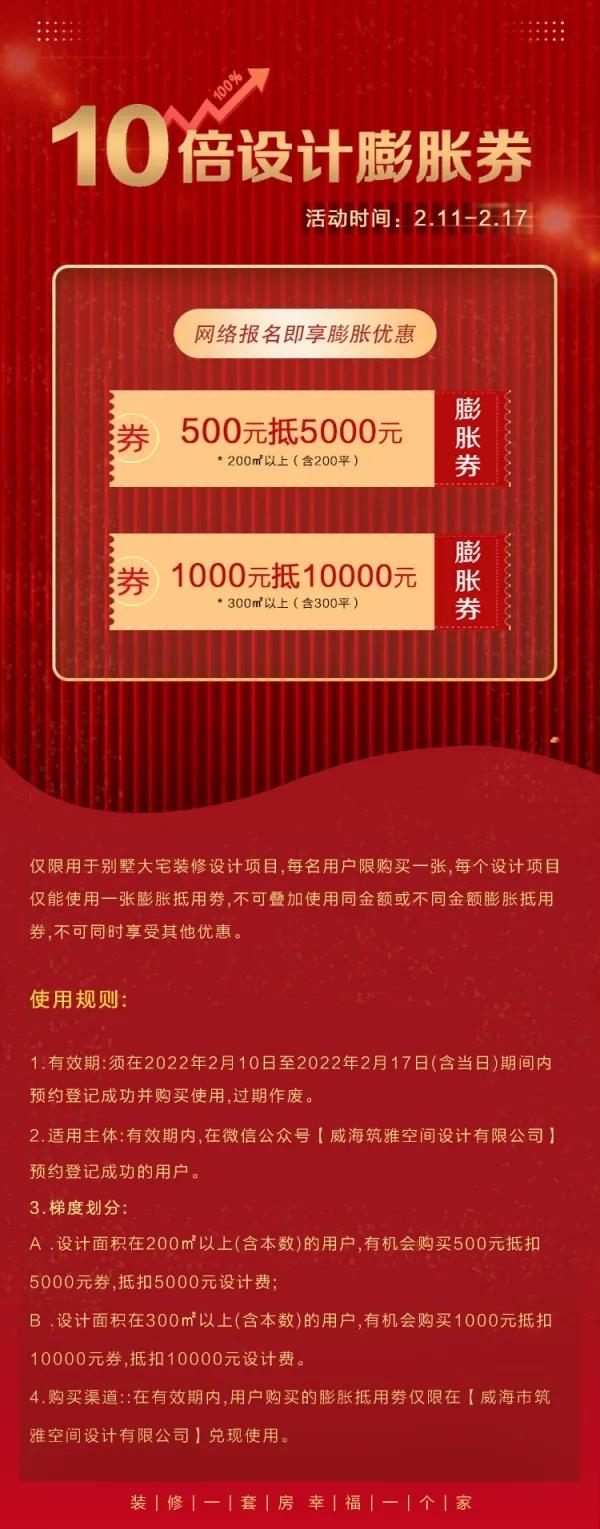 筑雅空間10倍設(shè)計(jì)費(fèi)膨脹券