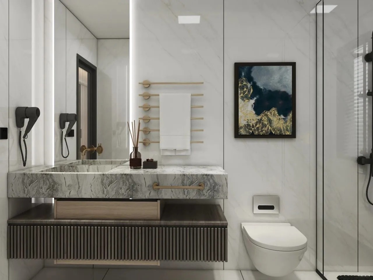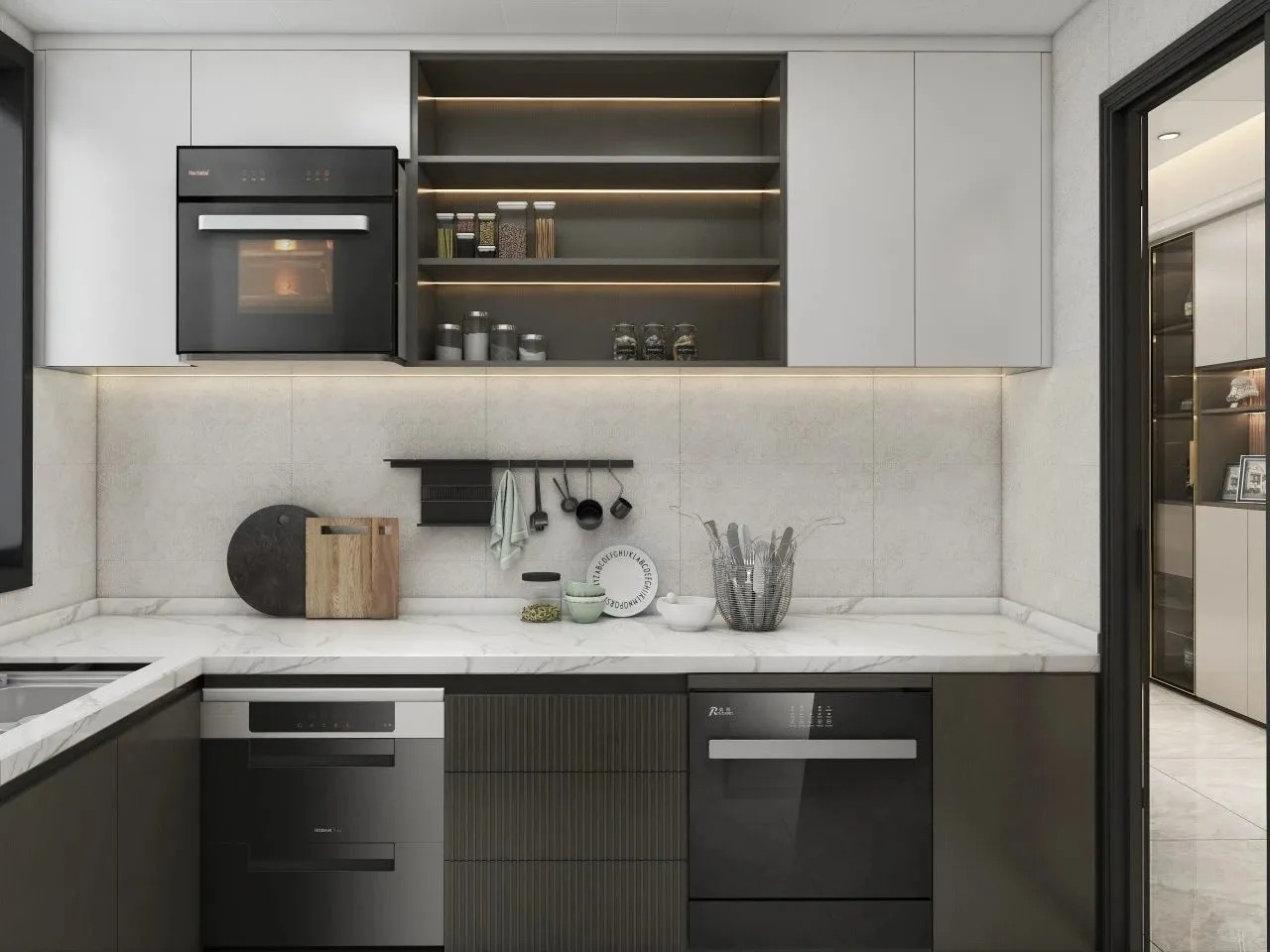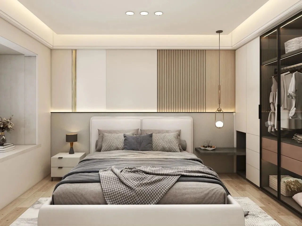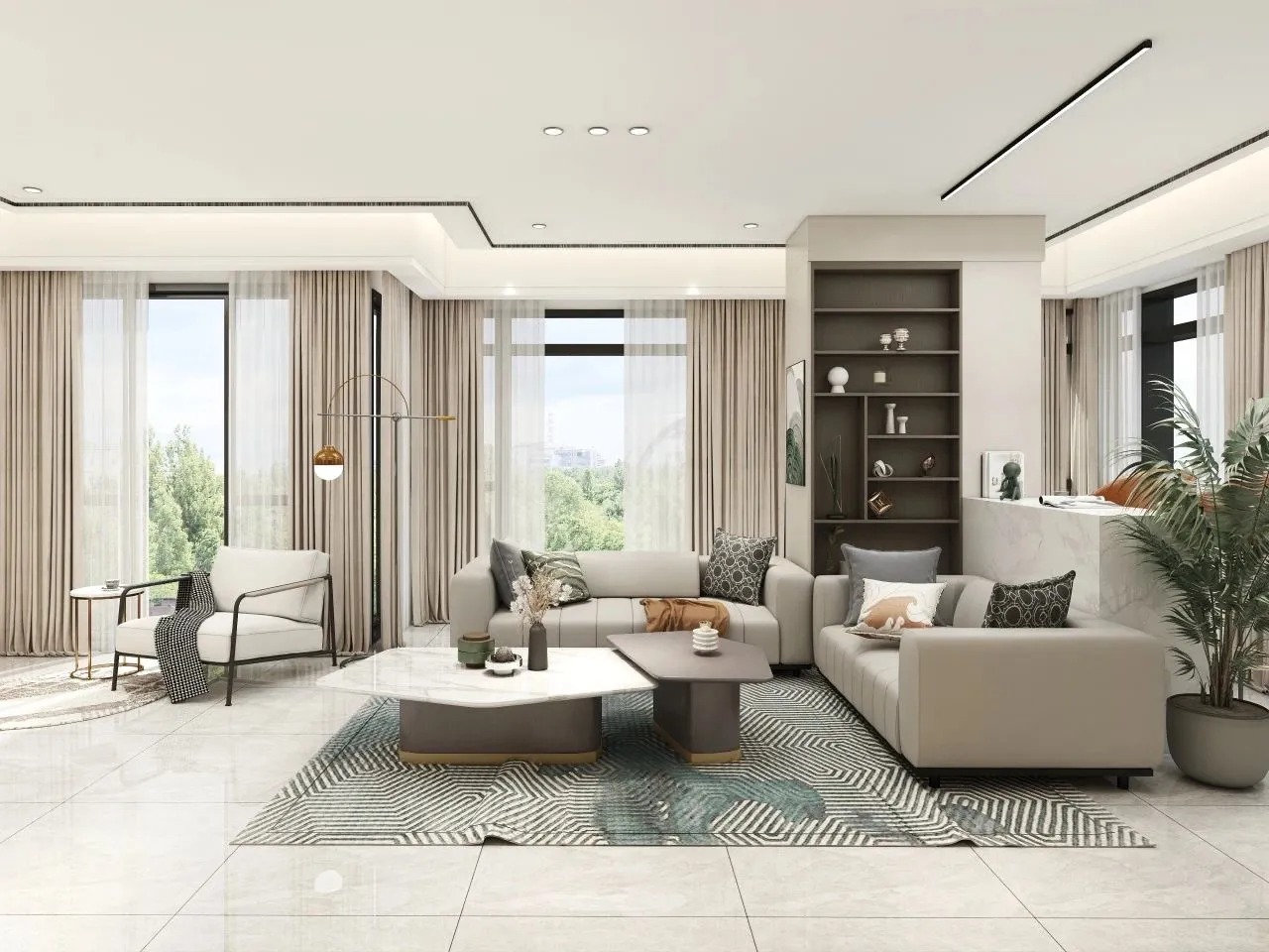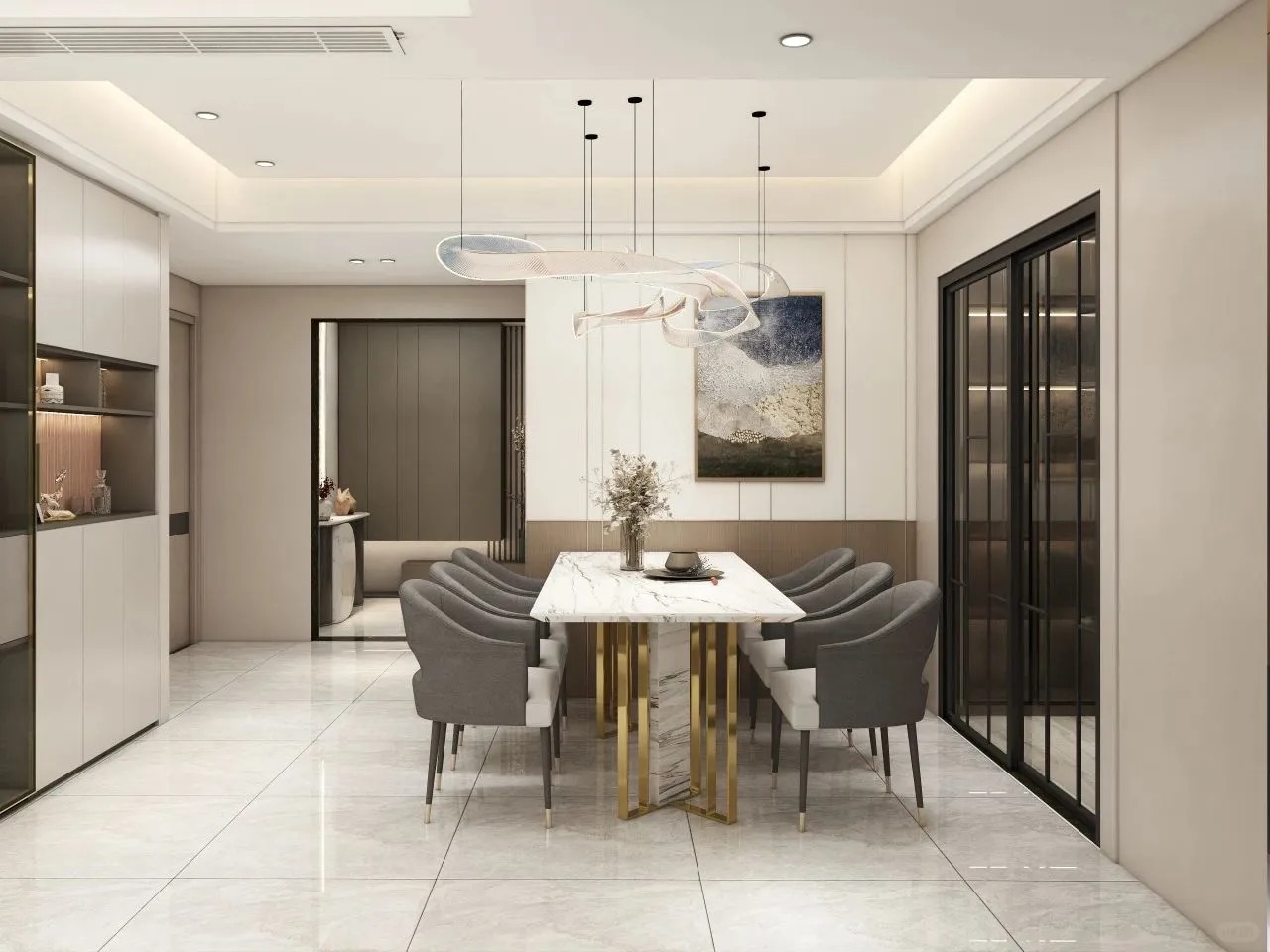 本案以現(xiàn)代輕奢風(fēng)為主格調(diào)運(yùn)用不同材質(zhì)紋理呈現(xiàn)家具在不同場(chǎng)景中的獨(dú)特個(gè)性通過光與影、明與暗、深與淺
